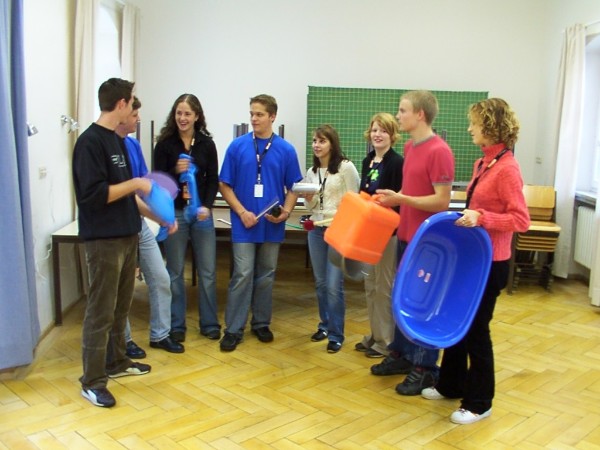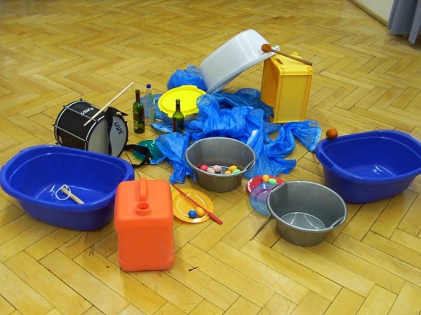 Wäschewannen, Weinflaschen, Kanister, Plastikkisten und Mülltüten -In