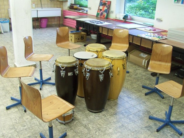 Einmal mit Papa richtig auf die „Pauke“ hauen? In diesem Workshop spielen Kinder mit ihren Vätern auf Congas und andern Percussionsinstrumenten. Auf spielerische Weise wird der Zugang zu den Instrumenten und den Rhythmen erschlossen. Gemeinsam gehen wir auf eine Reise durch viele Länder über mehrer Kontinente und lernen dabei auch Lieder und Spiele aus aller Welt kennen.